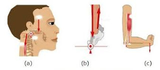 (a)Kira-kira kalian bisa menebak jenis tuas keberapakah itu? Pada tengkorak dan tulangleher merupakan jenis tuas pertama. Karena, kalau dirasakan leher sebagi kuasa yangmembuatbeban dalam hal ini tulang didaerah muka terangkat dan porosnya (titiktumpu) ada ditengah hal itu juga yang menyebabkan leher sering pegal-pegal.